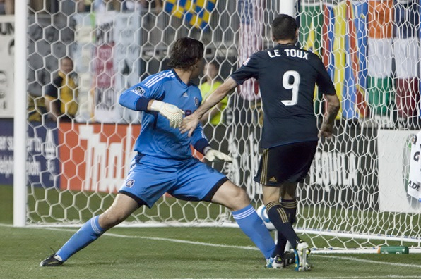 Roger Torres struggled to create space all night. He finally found some in the 33rd minute and tried to slot in Le Toux down the right channel. The pass was deflected to the middle of the field where Veljko Paunovic deftly touched it to the left and fired a brilliant low shot beyond Sean Johnson.
