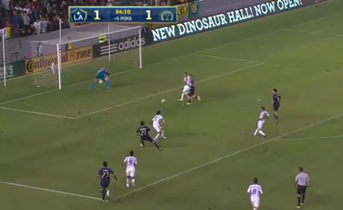 Just before the half, however, the Union managed to sneak into the lead well against the run of play. Moments after Valdes blazed a free header over Saunders’ bar, the Union found the breakthrough that LA could not.