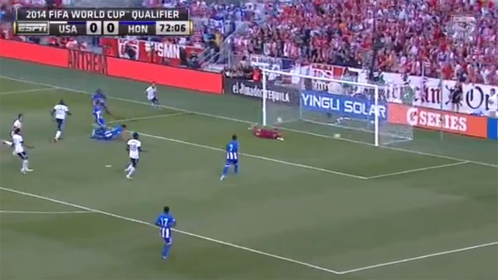 The first half was relatively dull, with few moments of excitement for either side, a result that could only be described as a win for Honduras. Jurgen Klinsmann’s lineup was altered as expected, with Jermaine Jones and Graham Zusi returning to the side, and Fabian Johnson sliding back into defense. Dealing with many absences of their own, the Honduras game plan was clear from the opening whistle: frustrate the U.S. with physical play, be difficult to break down when the U.S. had the ball, and force turnovers to create scoring opportunities. Such a plan was not a surprise, but the U.S. seemed logy in the heat, and struggled to play fast enough to get behind the obdurate Honduran defense.