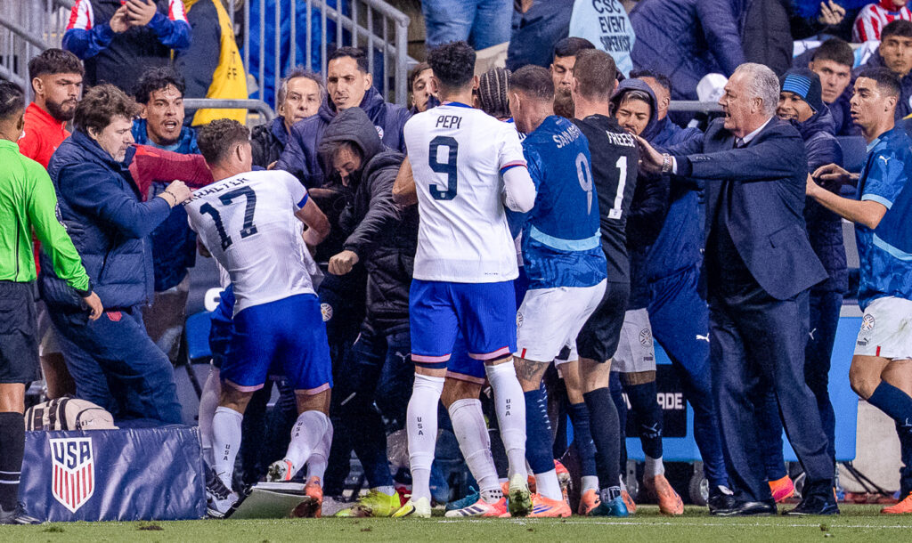 In an international friendly match in Chester PA, the U.S. Men’s National Team defeated Paraguay 2-1. The match included a late-game brawl that resulted in a red card for an unused Paraguay substitute.