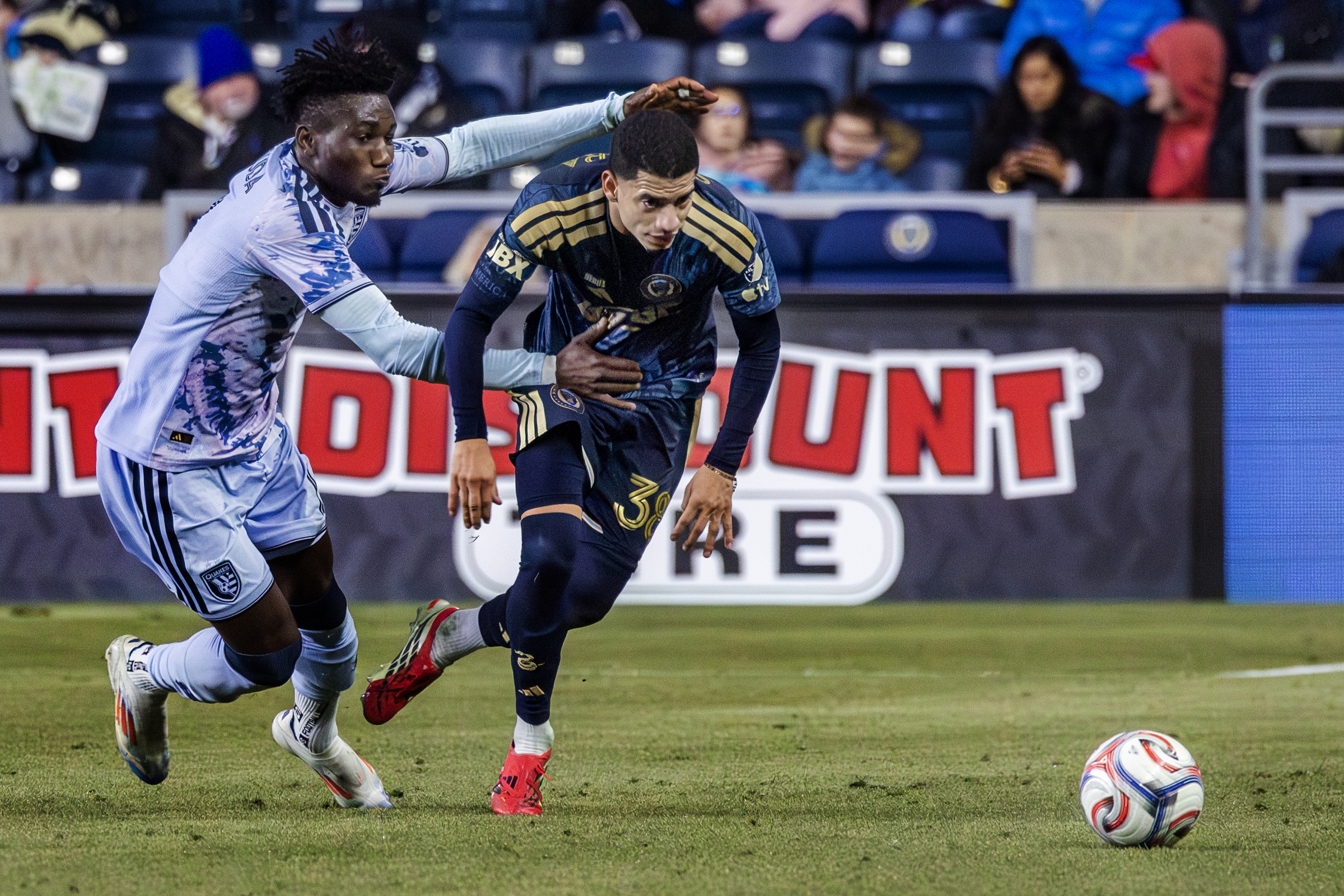 Philadelphia Union midfielder Milan Iloski (right) is fouled by San Jose Earthquakes right back Benji Kikanovic in the first half of the Union’s 1-0 loss to the San Jose Earthquakes at Subaru Park in Chester, Pa. on Saturday night, March 7, 2026.Philadelphia Union left back Giovanny Sequera delivers a throw in, in the first half of the Union’s 1-0 loss to the San Jose Earthquakes at Subaru Park in Chester, Pa. on Saturday night, March 7, 2026.Philadelphia Union striker Bruno Damiani (right) and San Jose Earthquakes center back Daniel Munie (left) fight for a header in the first half of the Union’s 1-0 loss to the San Jose Earthquakes at Subaru Park in Chester, Pa. on Saturday night, March 7, 2026.Philadelphia Union goalkeeper Andre Blake dives to take the ball away from San Jose Earthquakes striker Preston Judd on a breakaway in the first half of the Union’s 1-0 loss to the San Jose Earthquakes at Subaru Park in Chester, Pa. on Saturday night, March 7, 2026.Philadelphia Union midfielder Milan Iloski sends a corner into the box in the first half of the Union’s 1-0 loss to the San Jose Earthquakes at Subaru Park in Chester, Pa. on Saturday night, March 7, 2026.Philadelphia Union left back Giovanny Sequera breaks away from San Jose Earthquakes midfielder Ousseni Bouda in the first half of the Union’s 1-0 loss to the San Jose Earthquakes at Subaru Park in Chester, Pa. on Saturday night, March 7, 2026.Philadelphia Union center back Japhet Sery looks for an outlet to pass the ball in the first half of the Union’s 1-0 loss to the San Jose Earthquakes at Subaru Park in Chester, Pa. on Saturday night, March 7, 2026.Philadelphia Union center back Japhet Sery goes up for a header in the first half of the Union’s 1-0 loss to the San Jose Earthquakes at Subaru Park in Chester, Pa. on Saturday night, March 7, 2026.Philadelphia Union midfielder Milan Iloski (right) and San Jose Earthquakes midfielder Ousseni Bouda (left) fight for position on the ball in the first half of the Union’s 1-0 loss to the San Jose Earthquakes at Subaru Park in Chester, Pa. on Saturday night, March 7, 2026.Philadelphia Union center back Nathan Harriel puts a diving header on goal that’s saved by San Jose Earthquakes goalkeeper Daniel in the second half of the Union’s 1-0 loss to the San Jose Earthquakes at Subaru Park in Chester, Pa. on Saturday night, March 7, 2026.Philadelphia Union midfielder Indiana Vassilev (right) and San Jose Earthquakes midfielder Beau Leroux (left) fight for a header in the second half of the Union’s 1-0 loss to the San Jose Earthquakes at Subaru Park in Chester, Pa. on Saturday night, March 7, 2026.Philadelphia Union left back Giovanny Sequera (No. 38) cuts past a sliding Benji Kikanovic in the second half of the Union’s 1-0 loss to the San Jose Earthquakes at Subaru Park in Chester, Pa. on Saturday night, March 7, 2026.San Jose Earthquakes midfielder Ousseni Bouda puts a shot past Philadelphia Union goalkeeper Andre Blake after beating left back Giovanny Sequera in the second half of the Union’s 1-0 loss to the San Jose Earthquakes at Subaru Park in Chester, Pa. on Saturday night, March 7, 2026.Philadelphia Union striker Bruno Damiani kicks San Jose Earthquakes midfielder Ousseni Bouda in the head as he attempts a bicycle kick in the box in the second half of the Union’s 1-0 loss to the San Jose Earthquakes at Subaru Park in Chester, Pa. on Saturday night, March 7, 2026.Philadelphia Union striker Ezekiel Alladoh (No. 23) shouts to the ref for a penalty after being knocked to the ground in the box in the second half of the Union’s 1-0 loss to the San Jose Earthquakes at Subaru Park in Chester, Pa. on Saturday night, March 7, 2026.Philadelphia Union center back Nathan Harriel is shown a yellow card in the second half of the Union’s 1-0 loss to the San Jose Earthquakes at Subaru Park in Chester, Pa. on Saturday night, March 7, 2026.San Jose Earthquakes goalkeeper Daniel and Philadelphia Union center back Nathan Harriel collide in the box in the second half of the Union’s 1-0 loss to the San Jose Earthquakes at Subaru Park in Chester, Pa. on Saturday night, March 7, 2026.Players watch as a corner played by Philadelphia Union midfielder Indiana Vassilev sails into the box in the second half of the Union’s 1-0 loss to the San Jose Earthquakes at Subaru Park in Chester, Pa. on Saturday night, March 7, 2026.Philadelphia Union center back Japhet Sery runs with the ball in the second half of the Union’s 1-0 loss to the San Jose Earthquakes at Subaru Park in Chester, Pa. on Saturday night, March 7, 2026.Philadelphia Union midfielder Indiana Vassilev works past San Jose Earthquakes midfielder Jack Skahan in the second half of the Union’s 1-0 loss to the San Jose Earthquakes at Subaru Park in Chester, Pa. on Saturday night, March 7, 2026.Philadelphia Union right back Frankie Westfield goes to ground after crossing the ball into the box in the second half of the Union’s 1-0 loss to the San Jose Earthquakes at Subaru Park in Chester, Pa. on Saturday night, March 7, 2026.Philadelphia Union midfielder Jesus Bueno works the ball past San Jose Earthquakes midfielder Ian Harkes in the second half of the Union’s 1-0 loss to the San Jose Earthquakes at Subaru Park in Chester, Pa. on Saturday night, March 7, 2026.