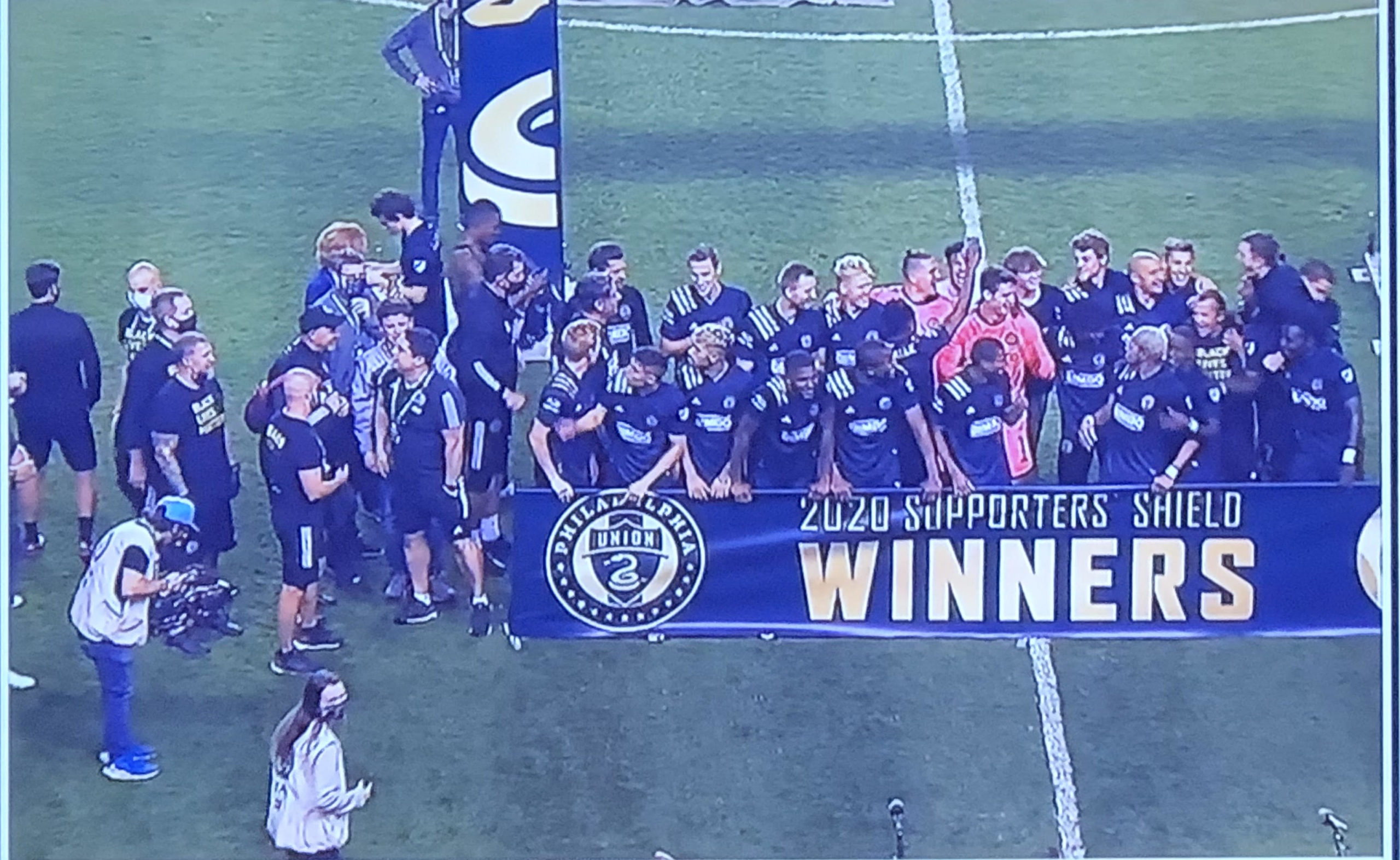 The PSP staff reacts to the first trophy in Philadelphia Union history.